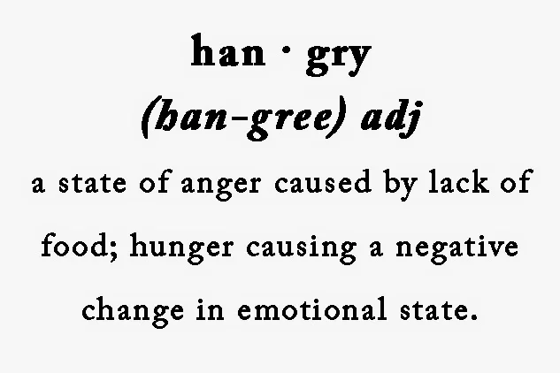 Hangry is described on the Internet as ‘a state of anger caused by lack of food; hunger causing a negative change in emotional state.’ Well ‘a negative change in emotional state’ may be an understatement. I have shredded my share of purple pants while attempting to throw my bike in a hulk-like rage. At best, when my blood sugar drops, I sever all communication and focus the energy I have left, drawn from the depths of my glycogen stores, to find food. I communicate only in grunts, head nods and spontaneous tears until I am fed. I, all but, foam at the mouth.